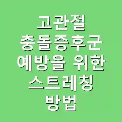 고관절 충돌증후군은 고관절 주변의 근육과 관절에 발생하는 통증으로, 잘못된 생활 습관이나 자세, 혹은 고관절의 과사용으로 인해 발생할 수 있습니다. 이러한 증상을 예방하기 위해서는 적절한 스트레칭 방법이 중요합니다. 스트레칭을 통해 근육을 유연하게 만들고 혈액 순환을 촉진함으로써 통증을 완화할 수 있습니다. 이 글을 통해 고관절 충돌증후군의 예방을 위한 다양한 스트레칭 방법을 배우고, 통증 관리에 필요한 정보도 함께 얻어가시기 바랍니다.