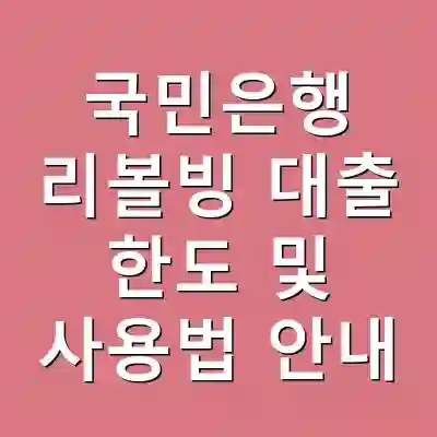 국민은행 리볼빙 대출은 유연한 대출 방식으로, 필요할 때마다 한도를 활용할 수 있는 장점이 있습니다. 본 대출은 신용 카드의 리볼빙 기능처럼 원금 상환 방식이 유연하여 자금 관리에 편리함을 제공합니다. 그러나 한도 및 사용법에 대해 명확히 이해하고 접근하는 것이 중요합니다. 이 글을 통해 국민은행 리볼빙 대출의 한도 설정, 활용 방법, 및 주의사항 등을 상세히 안내드립니다. 이를 통해 여러분은 보다 효과적인 대출 관리 방법을 익히고, 필요한 자금을 안정적으로 조달할 수 있는 능력을 키울 수 있습니다.