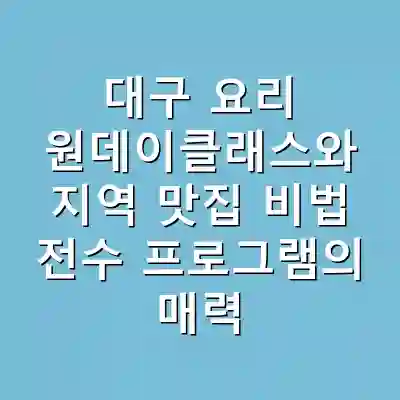 대구 요리 원데이클래스는 지역 맛집의 요리를 배울 수 있는 프로그램으로, 실습 중심으로 진행됩니다. 참가자들은 전문가로부터 직접 비법을 배우고, 다양한 요리 경험을 통해 자신의 요리 기술을 향상시키게 됩니다. 지역 맛집 비법 전수 프로그램은 대구의 미식 문화를 깊이 이해할 수 있는 기회를 제공합니다.