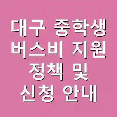 대구 중학생을 위한 버스비 지원 정책은 연간 240,000원의 지원금을 제공합니다. 신청 방법은 대구시 홈페이지에서 간단하게 진행할 수 있으며, 신청 시 주의사항을 확인해야 합니다. 이 정책은 중학생의 경제적 부담을 줄이고, 대중교통 이용을 활성화하는 데 도움을 줄 것입니다.
