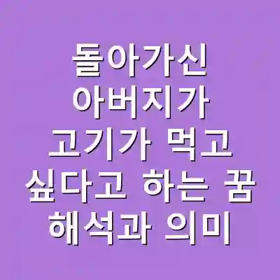 돌아가신 아버지가 고기를 먹고 싶다는 꿈은 여러 해석을 가질 수 있으며, 아버지와의 관계나 감정을 반영할 수 있습니다. 이 꿈은 가족 간의 유대감을 강조하거나, 삶의 변화를 암시하는 긍정적인 신호일 수 있습니다. 개인의 경험에 따라 해석이 달라지므로, 자신만의 의미를 찾아가는 것이 중요합니다.