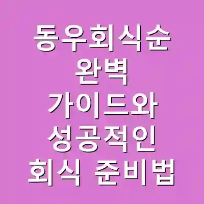 동우회식순은 조직이나 팀이 함께 하는 회식에서 중요한 역할을 하며, 이를 통해 원활한 소통과 친목을 도모할 수 있습니다. 성공적인 회식을 위해서는 철저한 준비와 세심한 식순 구성, 그리고 행사 운영이 필요합니다. 본 가이드는 동우회식순의 구성 요소와 준비법에 대해 상세히 설명하며, 이를 통해 참여자 모두가 만족할 수 있는 회식을 기획할 수 있도록 돕습니다. 이 글을 통해 동우회식순의 핵심 요소와 효과적인 준비 방법을 배울 수 있습니다.