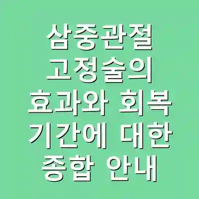 삼중관절 고정술은 주로 외상이나 기타 손상에 의한 관절의 비정상적인 이동을 방지하기 위해 시행되는 수술입니다. 이 수술은 삼중관절의 구조적 안정성을 회복하고, 재활을 통한 기능 회복을 목표로 합니다. 삼중관절 고정술 후에는 환자의 회복 기간이 중요한 요소로 작용하는데, 이는 개인의 건강 상태와 수술 전후의 관리에 따라 다르게 나타날 수 있습니다. 이 글에서는 삼중관절 고정술의 효과와 회복 기간에 대한 구체적인 정보를 제공합니다.