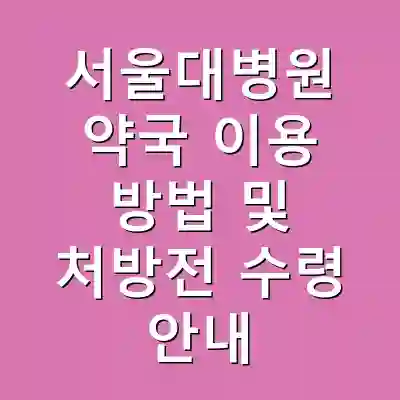 서울대병원 약국의 이용 방법과 처방전 수령 과정, 영업시간에 대한 정보를 정리했습니다. 약국 이용 시 필요한 준비물과 유용한 팁을 통해 보다 효율적인 약국 이용을 도와드립니다. 병원 방문 시 꼭 확인해야 할 사항들을 놓치지 마세요.