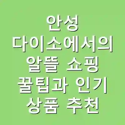 안성 다이소에서 알뜰 쇼핑을 즐기는 것은 매우 매력적인 경험입니다. 다양한 상품을 저렴한 가격에 구매할 수 있는 기회를 활용하고, 유용한 꿀팁들을 통해 더욱 효율적인 쇼핑을 즐기시길 바랍니다.