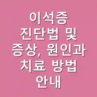 이석증은 어지럼증을 유발하는 질환으로, 나이, 외상, 감염 등이 원인입니다. 진단은 전문의의 검사를 통해 이루어지며, 치료는 물리치료와 약물 치료가 포함됩니다. 예방을 위해서는 귀를 보호하는 생활습관이 필요합니다.