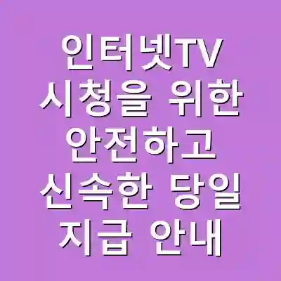 인터넷으로 TV를 보기 위한 방법은 여러 가지가 있으며, 특히 당일 지급의 개념이 중요하게 부각되고 있습니다. 최근 많은 사용자들이 고속 인터넷과 TV 상품을 결합하여 빠르고 안전한 방법으로 콘텐츠를 시청할 수 있는 방안을 찾고 있습니다. 이 글에서는 인터넷으로 TV를 보는 데 필요한 정보를 중심으로, 어떤 방법들이 있는지, 그리고 이를 통해 얻을 수 있는 이점에 대해 설명하겠습니다. 이 글을 다 읽고 나면, 인터넷으로 TV를 쉽게 보고, 혜택을 최대한 누릴 수 있는 방법에 대한 확신을 얻게 될 것입니다.