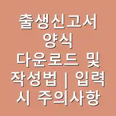 출생신고서는 아기의 출생을 공식적으로 등록하기 위한 중요한 서류입니다. 이 서류의 작성 및 제출 과정은 법적인 요구사항을 충족하는 데 필수적이며, 정확한 기입이 요구됩니다. 출생신고서 양식을 다운로드하여 작성하는 방법과 함께 유의해야 할 사항들을 알아보겠습니다. 이 글을 통해 출생신고서를 쉽게 작성하고 제출할 수 있는 방법을 배울 수 있습니다.