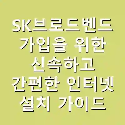 SK브로드벤드 가입을 고려하고 계신가요? 이번 포스팅에서는 빠르고 간편한 인터넷 설치 방법에 대해 상세히 설명드리겠습니다. SK브로드벤드는 전국적으로 안정된 인터넷 서비스를 제공하며, 설치 과정도 비교적 간단합니다. 이 글을 읽으시면 SK브로드벤드의 설치 혜택, 요금제, 그리고 설치 절차에 대한 유용한 정보를 얻으실 수 있습니다.